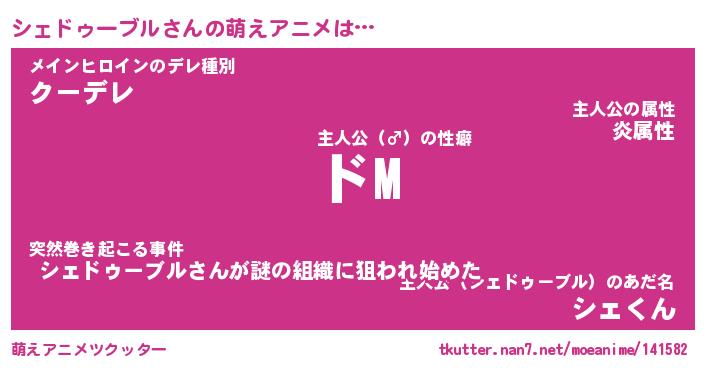 | 女子向けラノベタイトル風あだ名 | 『(仮)シェドゥーブルのやんごとなき事情』 |