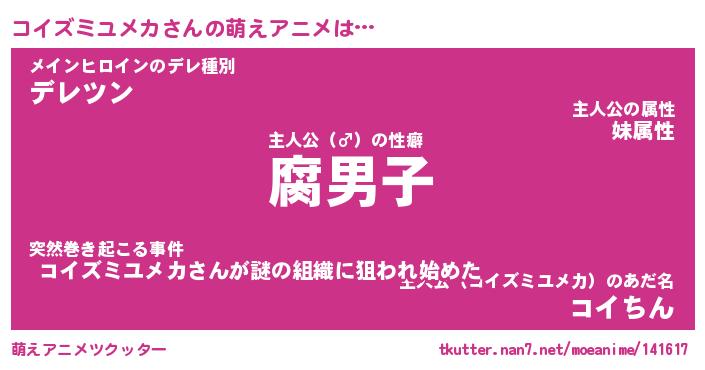 | 男性向けラノベタイトル風あだ名 | 『コイズミユメカアートオンライン』 |