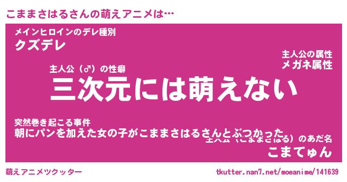 | ヘコむあだ名 | 『こまにー』『なまこ酢』『こまを』 |