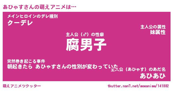 | 男性向けラノベタイトル風あだ名 | 『アヒャスアートオンライン』 |