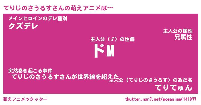 | 男性向けラノベタイトル風あだ名 | 『てりじのさうるすの憂鬱』 |