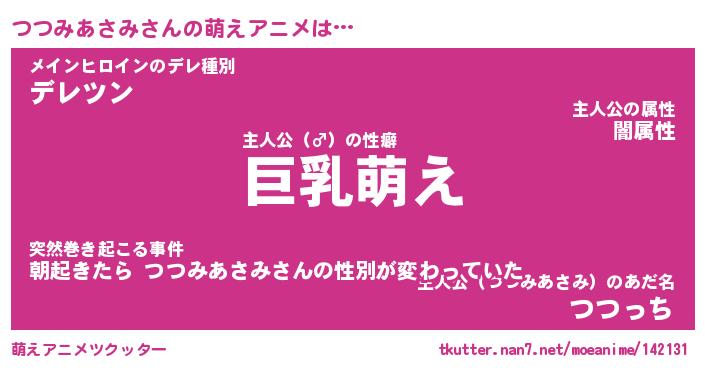 | 男性向けラノベタイトル風あだ名 | 『つつみあさみの憂鬱』 |
