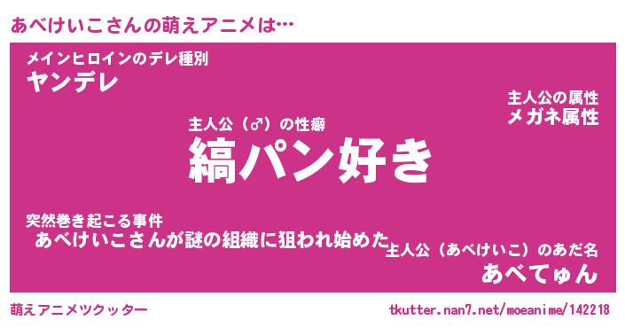 | 女子向けラノベタイトル風あだ名 | 『(仮)あべけいこのやんごとなき事情』 |