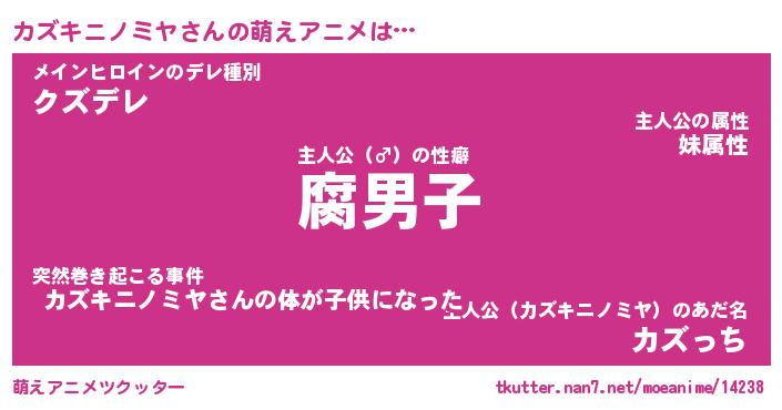 | 男性向けラノベタイトル風あだ名 | 『カズキニノミヤアートオンライン』 |