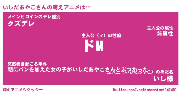 | 男性向けラノベタイトル風あだ名 | 『いしだあやこの憂鬱』 |