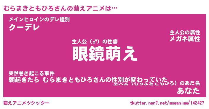 男性向けラノベタイトル風あだ名 | 『むらまきともひろの憂鬱』 |