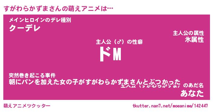 | 男性向けラノベタイトル風あだ名 | 『すがわらかずまの憂鬱』 |