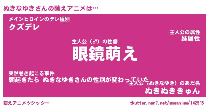 | 男性向けラノベタイトル風あだ名 | 『ぬきなゆきの憂鬱』 |