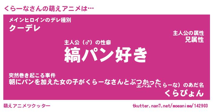 | 男性向けラノベタイトル風あだ名 | 『くらーなの憂鬱』 |