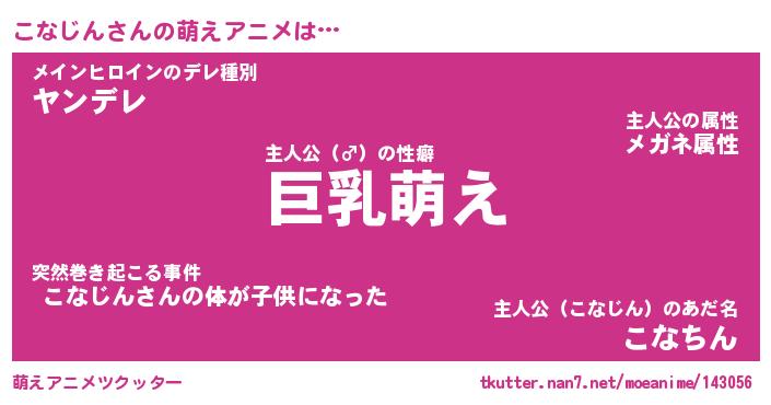 | 男性向けラノベタイトル風あだ名 | 『こなじんの憂鬱』 |