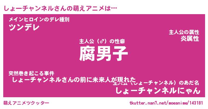 | ツイッター | しょーチャンネルさんのツイッターID『dendenmushi_idle』 |