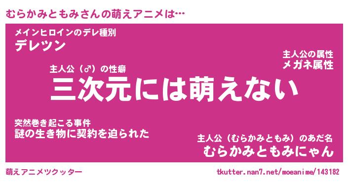 | 男性向けラノベタイトル風あだ名 | 『ムラカミトモミアートオンライン』 |