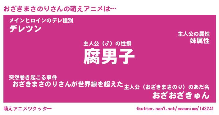 | 男性向けラノベタイトル風あだ名 | 『オザキマサノリアートオンライン』 |