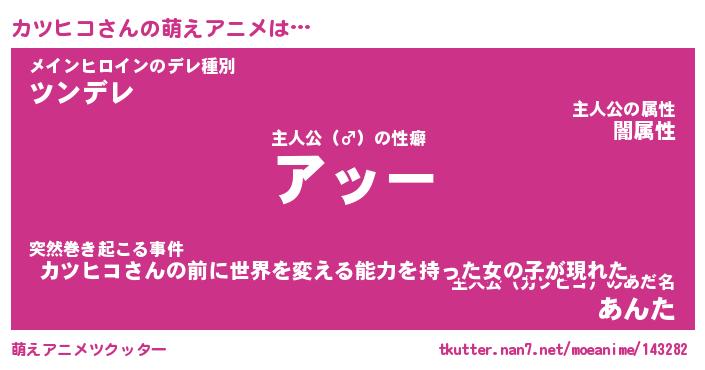 | 男性向けラノベタイトル風あだ名 | 『カツヒコアートオンライン』 |