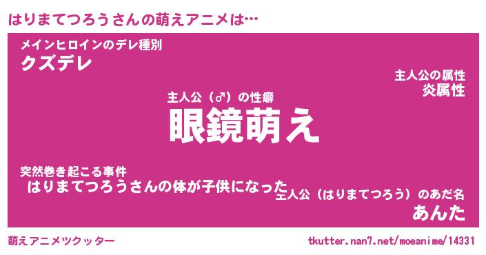 | 男性向けラノベタイトル風あだ名 | 『はりまてつろうの憂鬱』 |