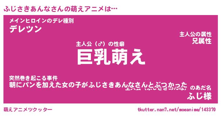 | 恥ずかしいあだ名 | 『プリティーふじさきあんな』『ふじちん』 |