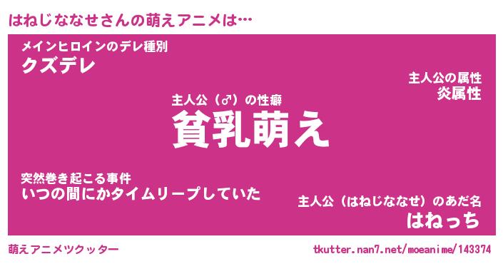| 男性向けラノベタイトル風あだ名 | 『はねじななせの憂鬱』 |