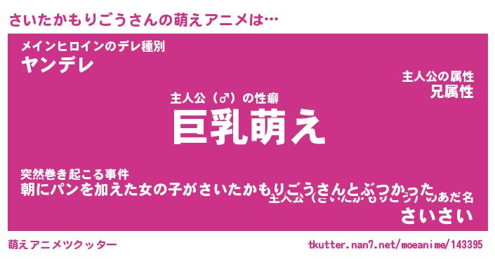 | 男性向けラノベタイトル風あだ名 | 『さいたかもりごうの憂鬱』 |