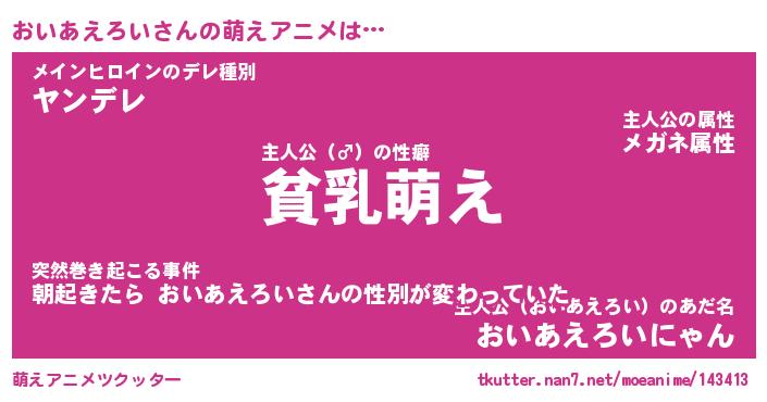 | 女子向けラノベタイトル風あだ名 | 『(仮)おいあえろいのやんごとなき事情』 |