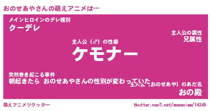 | ファンタジー風あだ名 | 『オノフェル』『エターナルオノセアヤー』 |