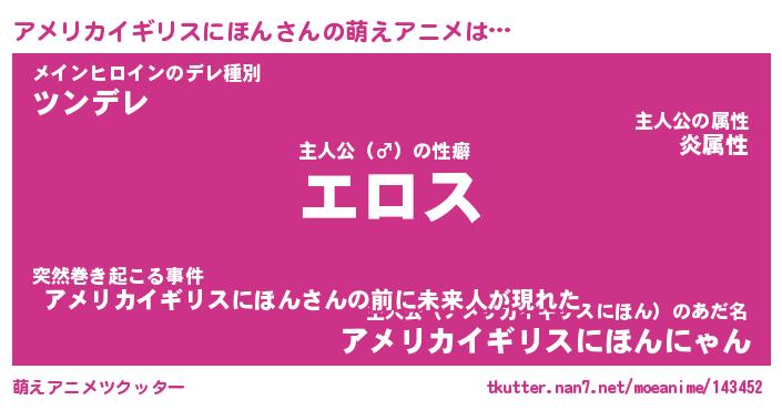 | 男性向けラノベタイトル風あだ名 | 『アメリカイギリスニホンアートオンライン』 |