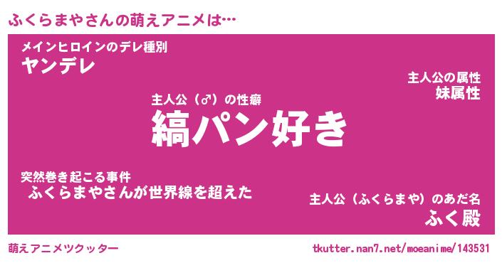 | 男性向けラノベタイトル風あだ名 | 『ふくらまやの憂鬱』 |