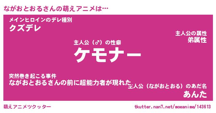 | 女子向けラノベタイトル風あだ名 | 『誰かこのながおとおるを説明してください! ~契約から始まるウェディング~』 |