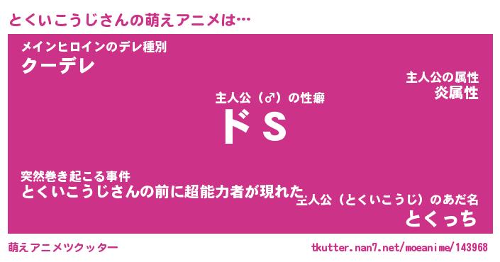 | 女子向けラノベタイトル風あだ名 | 『(仮)とくいこうじのやんごとなき事情』 |