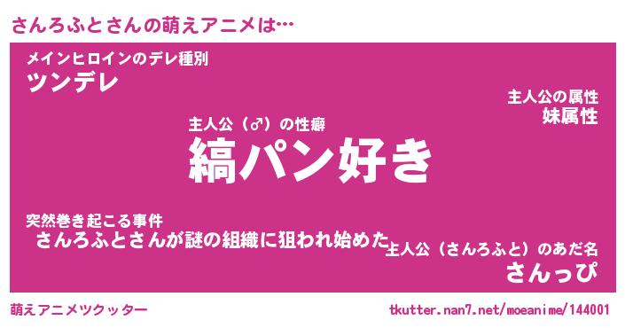 | 男性向けラノベタイトル風あだ名 | 『さんろふとの憂鬱』 |