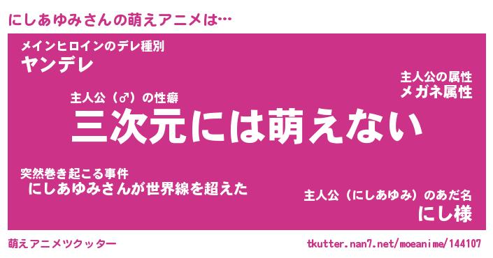 | ヘコむあだ名 | 『にしにー』『なまこ酢』『にしっ子』 |