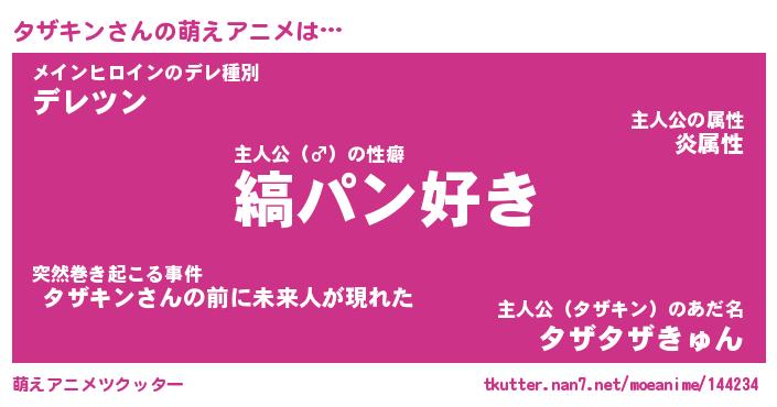 | 男性向けラノベタイトル風あだ名 | 『タザキンの憂鬱』 |
