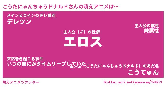 | 女子向けラノベタイトル風あだ名 | 『誰かこのこうたにゃんちゅうドナルドを説明してください! ~契約から始まるウェディング~』 |