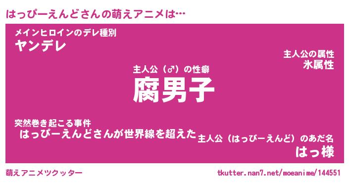 | 男性向けラノベタイトル風あだ名 | 『ハッピーエンドアートオンライン』 |