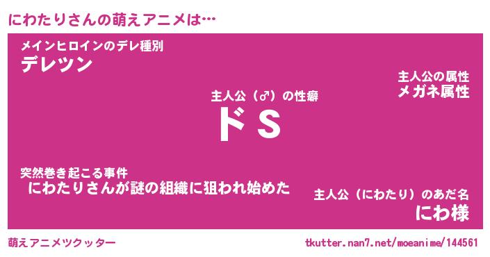 | ヘコむあだ名 | 『にわにー』『なまこ酢』『にわっ子』 |