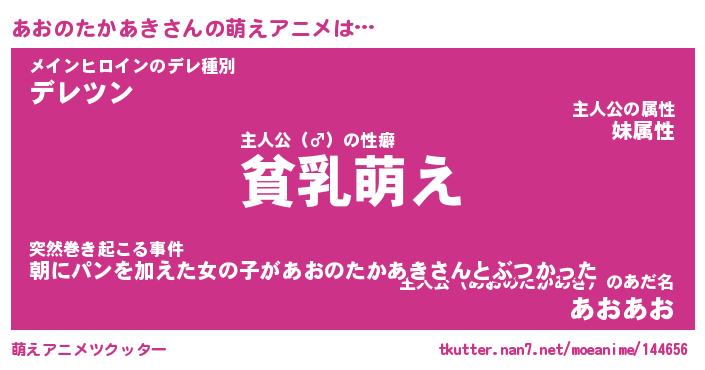 | 男性向けラノベタイトル風あだ名 | 『あおのたかあきの憂鬱』 |