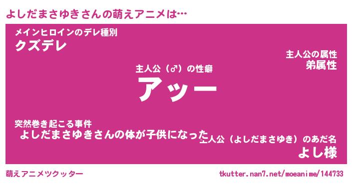 | 女子向けラノベタイトル風あだ名 | 『誰かこのよしだまさゆきを説明してください! ~契約から始まるウェディング~』 |