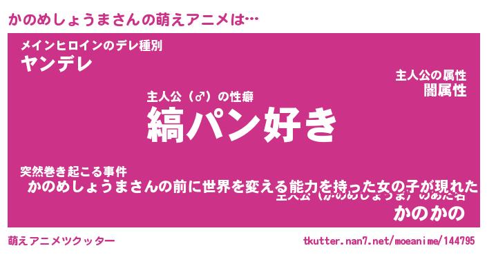| 男性向けラノベタイトル風あだ名 | 『かのめしょうまの憂鬱』 |
