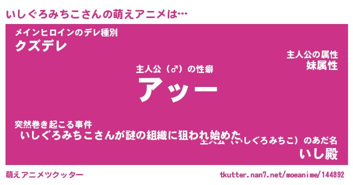 | 肩書あだ名 | 『いしぐろみちこ御曹司』 |