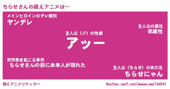 | 男性向けラノベタイトル風あだ名 | 『チラセアートオンライン』 |
