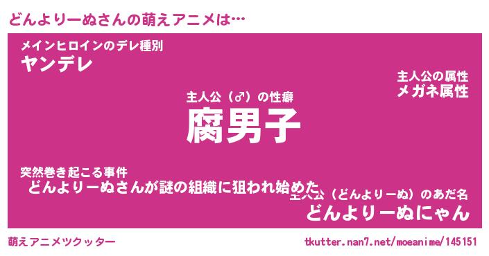 | 胡散臭い通販商品みたいなあだ名 | 『モテモテ間違いなし霊験あらたかなお札…その名も「どんよりーぬ」』 |