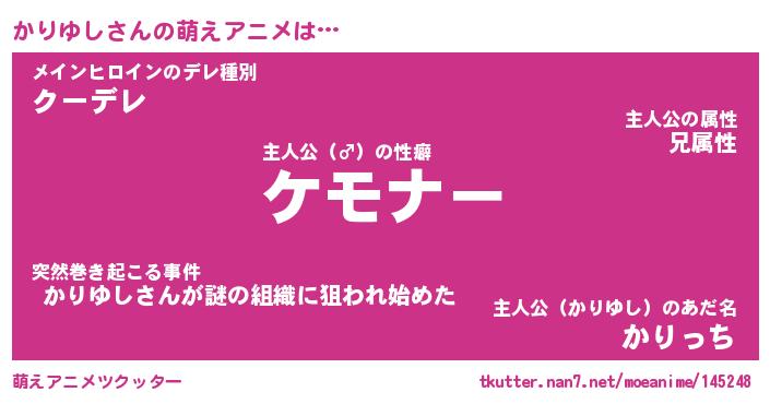 | ヘコむあだ名 | 『かりにゅー』『酢こんぶ』『かりを』 |
