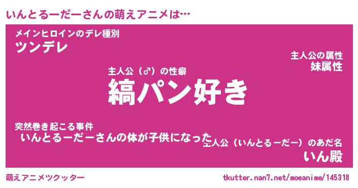 | 男性向けラノベタイトル風あだ名 | 『いんとるーだーの憂鬱』 |
