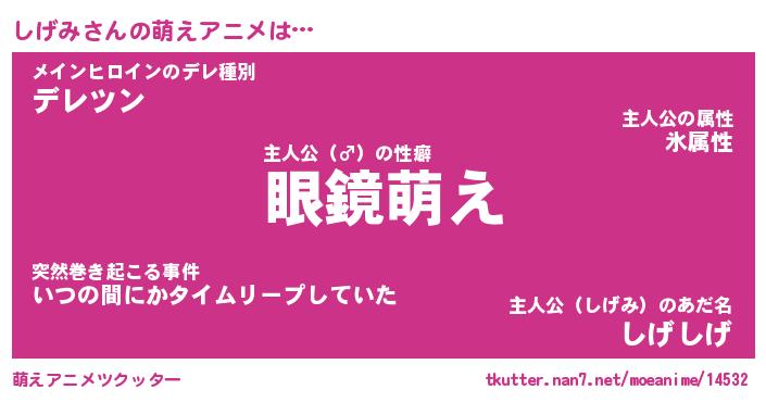 | 男性向けラノベタイトル風あだ名 | 『しげみの憂鬱』 |