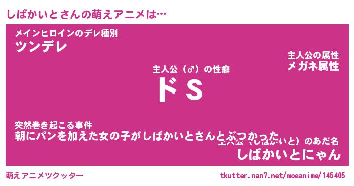 | 男性向けラノベタイトル風あだ名 | 『しばかいとの憂鬱』 |