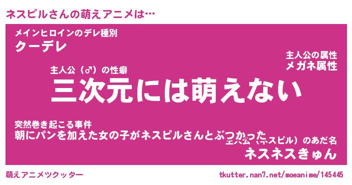 | 男性向けラノベタイトル風あだ名 | 『ネスピルアートオンライン』 |