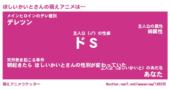 | 男性向けラノベタイトル風あだ名 | 『ほしいかいとの憂鬱』 |