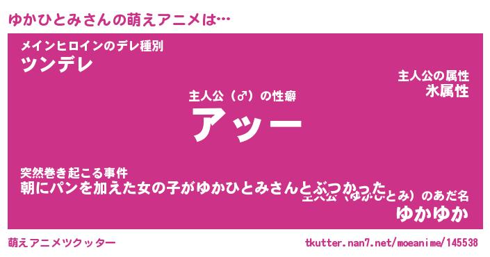 | 男性向けラノベタイトル風あだ名 | 『ユカヒトミアートオンライン』 |