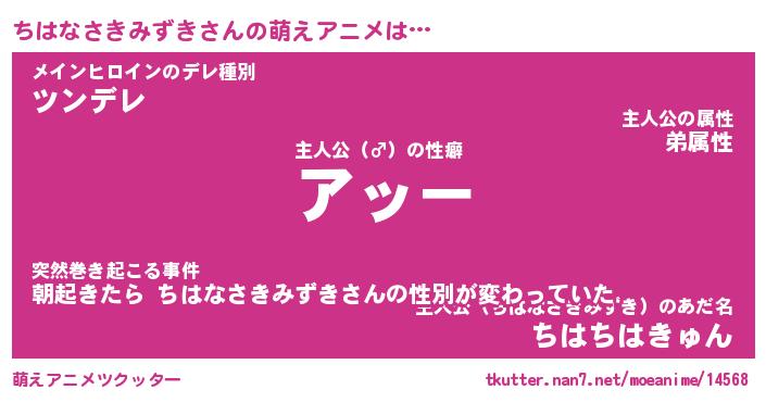 | 男性向けラノベタイトル風あだ名 | 『チハナサキミズキアートオンライン』 |