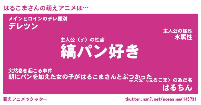 | 男性向けラノベタイトル風あだ名 | 『はるこまの憂鬱』 |