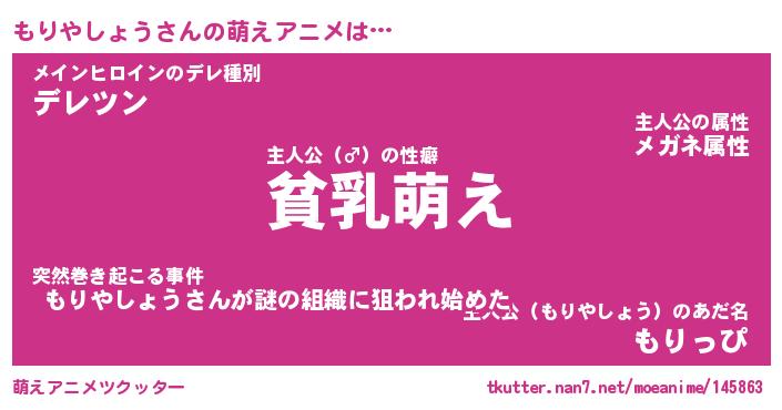 | 男性向けラノベタイトル風あだ名 | 『もりやしょうの憂鬱』 |
